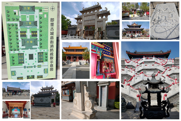 此洞據說是菩薩聚集的地方,巧遇2位女師父和信徒來此虔誠參拜,信徒一拜一叩首,可能是有事相求而來,科學查證此窟,事實上是冰川留下來的遺跡,一路走來的路上,讓人心情非常舒服,雖然偶有下雨,但都不算下得太大,唯有在我離開時才下大雨,所以這一路很幸運。 第四天的青島決定去拜訪一座三國時期魏朝就有的法海寺,下午則去參觀即墨古城。 今天一早起床,牙齦疼得厲害,想到觀音菩薩是慈悲的菩薩就在觀音殿內求解除疼痛,結果一路往即墨古城時,真的緩解了不少,因為這一帶不是地鐵區,所以我用百度搜尋,以公車代步,真的是坐公車認識青島郊區,不知不覺來到了葡萄觀光果園區,但因為下午要去即墨,所以不敢買葡萄,因為擰在手上嫌重,搭了大概是2小時才到即墨古城,共搭二輛公車,各花$1,卻車遊了非常大範圍的即墨區,看到非常真切的農村風貌,在大陸公共運輸真的很便民,我想政府應該補貼很多交通費用才對。 即墨古城範圍很大,新修、舊屋都有,保留完好的即墨縣署,讓我了解了清朝司法公堂的規制,參觀即墨古城不要錢,但參觀舊縣署和孔廟是要另外買票的,門票不貴,各$20,我因為此學期準備要介紹司法博物館的歷史,所以選擇進入參觀,認為值回票價,這座古城。想對清朝的縣城有所了解可以花時間細細走訪,縣城內的規劃非常完善,成格子狀的城市設計。