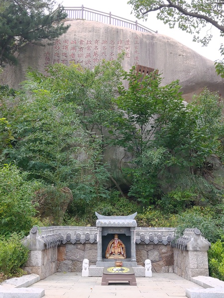 往太清宮的下山路段會經過紫霞花台,嶗山體現過盛唐的氣象,唐朝時期嶗山就是海上仙山,道家仙境的美名早已傳遍天下,唐玄宗還派人入山採藥煉丹,花台上刻有李白的詩:寄王屋山人孟大融,就是見證。