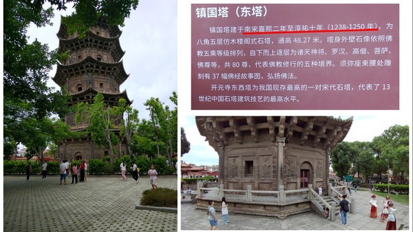 搭乘小白車往西街的開元寺,開元寺內遊客眾多,有男有女採用簪花裝扮,以女性為多,說真的,我覺得漢服在熱天裡,真的蠻不方便的,不過新一代的大陸年輕人,似乎不在乎熱,這次在大陸,深深感到現在的大陸年輕人充滿自信,對自己的文化充滿自信,漸漸呈現未來泱泱大國的雛型,寺內最著名的建築物是宋朝蓋的東塔和西塔,耐震,至今快千年仍屹立不搖。
