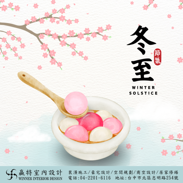 冬至,讓熱騰騰的湯圓,溫柔地把日子揉圓。 夜長天冷,一盞暖燈,讓家有了溫度。 願這份甜,伴你跨過歲末的寒冬。 ✨贏特室內設計‧裝修工程有限公司✨ 祝你 冬至平安,歲末圓滿! **********************************************************
