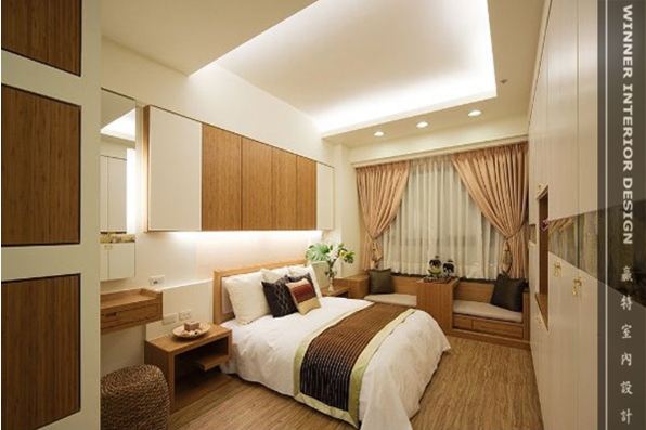 臥室較強調的是寧靜和溫馨的色調,以便於營造出良好的休息氣氛,而臥室的色彩適合冷色調的色彩,因為冷色調的色彩可以帶給人平靜的感受,當然不是選擇暖色調的色彩不好,若真的喜歡暖色調色彩,那麼在色彩的明度上就不宜太過鮮豔,應加些黑色的色調讓鮮豔的顏色收斂一些,會更符合臥室的需求;因此臥室設計在色彩的選擇上,以乾淨清爽的色調,如米白、原木、淡色為主的色調,既不會帶給人沉重感,也不會活潑到讓人情緒起伏太大。