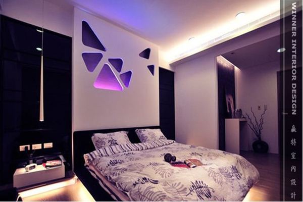 一般依照明的方式分為四類:(一)一般性照明(基礎照明),(二)工作照明(閱讀性照明),(三)點綴性照明(氣氛照明),(四)重點照明,臥室中是不需要使用重點照明的;在臥室的基礎照明之燈光設計以溫馨和暖的黃色燈光較適宜,且設計多是以室內空間有亮就好為原則,當需要工作或閱讀時再搭配閱讀照明來增加光源,因此在臥室的閱讀區域一定要有良好的照明,此外好好安排規劃點綴性照明,可以更增添臥室的氣氛。