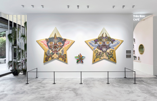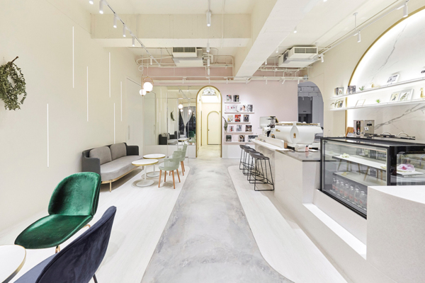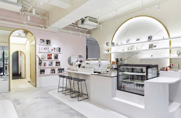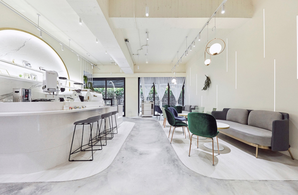 入口大廳處以簡潔白淨主色調,對比粗曠水泥地磨面展開迎賓序幕。吸睛的入門主牆以日籍藝術家「小松美羽」作品「三星一體」,回應「CATWALK」打造明日之星的期許。咖啡廳空間呈現輕盈流行的小清新,流線的地面導線混以空間多處金色曲線拉出時尚線條。辦公空間則採大量留白配搭基礎材元素,輔以中性光色照度提升工作時的理性思維。