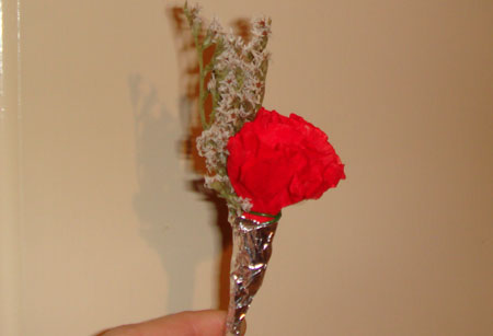 結果..真是壞消息.. 所有的票都賣完了. 我就問售票員有那一個星期六下午會有票. 售票員回答說: 所有的星期六的票都賣完了, 要等到九月才會有位置. 不然就早上來排隊, 他們有開放第一排的位置, 但是要以大早就去排, 不然沒有機會. 我又問那除了星期六下午外, 晚上的票也賣完了嗎? 沒有前面的位置嗎 ? 售票員回答說: 是的. 只有後面25 磅, 或一些30 磅的位置. 我看了一下他指給我看的位置, 還真後面, 不然就是在兩次側, 那不是什麼都看不到嗎? 看來我可能和『 真善美』無緣了, 因為也不知道我九月份還在不在倫敦呢. 雖然看不成, 我還是拍了一張照片, 算是到此一遊了. 既然看不成, 那我就去逛逛街, 買雙鞋子吧. 正當我逛的很努力的時候, 突然間一個老婆婆把一朵紙做的康乃馨往我的外套上插.我還沒回過神, 那朵康乃馨已經卡在我的外套上了. 接著, 老婆婆就把手往我伸過來, 叫我捐錢, 說是捐給幫助兒童癌症的. 嗯, 這是趕鴨子上架吧. 我不是小氣的人, 但是, 這種被半強迫的方式叫我捐, 真的不是捐的很爽. 這裡的人也太誇張了. 就是這朵康乃馨...讓我領教到原來英國人也會來趕鴨子上架這一套. 好不容易買到了鞋子, 想坐公車回家, 但是發現所以的公車都擠在 Oxford Street 上動彈不得.馬路上不只公車多, 計程車和人也多的離譜, 多到連警察車都開不過去. 就像是聖誕節的時候一樣, 每個人都大包小包的一大堆. 原來, 英國的經濟是那麼的景氣呀, 可是卻沒有反應在我那微薄的收入上. 我無奈的走到Regent Street上等公車, 等了起碼20 分鐘, 但是連一輛都不來, 所以只好很無奈的去搭地下鐵回家. 以後週末還是不要到 Oxford Street 上為妙.