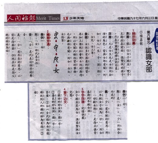 《部首輕鬆學》第六單元:認識女部(已刊登於人間福報970603)