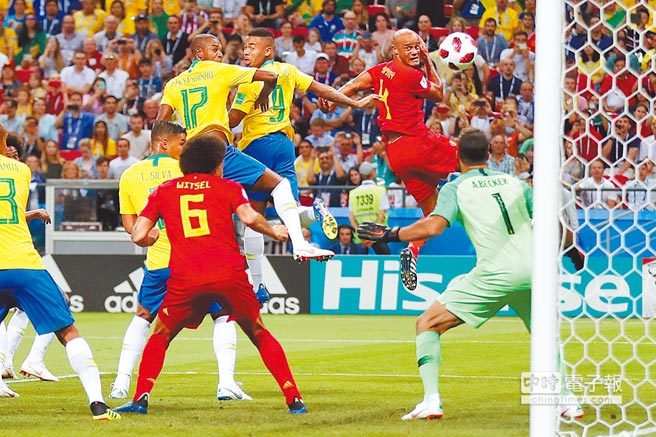 巴西隊費南迪紐(後排右三,17號)在對比利時的8強賽頂進烏龍球,終場巴西以1比2飲恨。(美聯社) 世界盃圓滿落幕,雖然只有一隊能捧起大力神盃,但32支勁旅在32天激烈廝殺中,共同創下多項令人津津樂道的難忘紀錄;包括烏龍球數寫歷屆新高,影像助理裁判(VAR)技術首度在世足登場,葡萄牙球王C羅納度成為史上最老的帽子戲法締造者。 不小心踢進自家球門的烏龍球,絕對是沒有人想要的尷尬紀錄。歷來世界盃超過2500顆進球中,只有53顆烏龍球。沒想到本屆竟然出現12顆,翻新1998年6球的超囧舊紀錄。 擺烏龍創下新高,刺激的12碼罰球也寫下新猷。判官大人開出29張罰單(踢進22球),比4年前的13次高出一倍有餘,輕鬆打破1990、1998和2002等屆共同保持的18次紀錄。 12碼罰球數大幅上揚的關鍵之一,就是在本屆世足賽首次引進的VAR技術。它可被視為門線技術的升級版,對於進球是否越位以及12碼罰球,也可藉由VAR確認。國際足總對VAR的表現十分滿意,稱許它針對足以影響比賽的關鍵判決,準確度高達99.3%。 本屆賽事被批評防反當道,讓愛看對攻的球迷大嘆比賽很無聊,但其實從俄羅斯5比0大勝沙烏地阿拉伯的開幕戰起,每場比賽都有進球,直到6月26日賽會編號第38場的法國和丹麥之戰,才出現首場進球掛零的和局。舊紀錄是1954年世界盃的26場,高懸超過一甲子。 黃牌在足球賽司空見慣,不過墨西哥隊蓋亞多在6月27日對瑞典之役,才開賽15秒就刷新最速申請黃牌的大會紀錄,舊紀錄是1986年烏拉圭隊巴提斯塔(紅牌)、以及1994年俄羅斯隊高爾柯維奇共同保持的54秒。