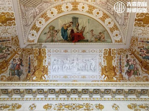 參觀這一區的時候,不要忘了抬頭看看天花板上精美的宮廷裝飾畫,其精緻奢華程度,一定會讓你歎為觀止!