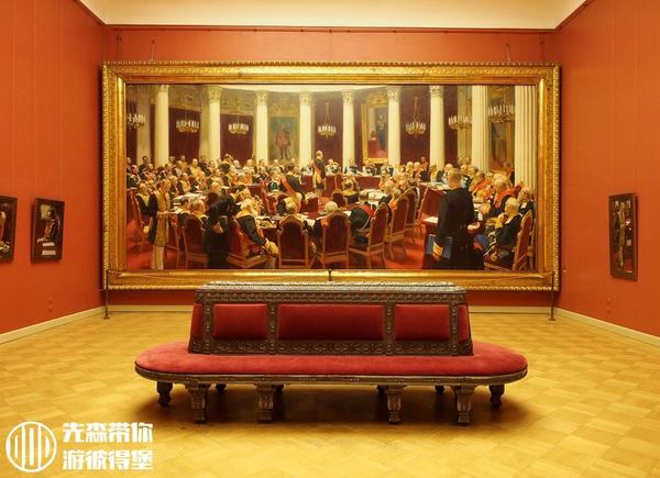 首先映入眼簾的是54號廳(這裡數字已經亂了),這裡擺放著國會向列賓訂制的巨幅作品《國會成立一百日慶》。為了準備這幅畫,列賓花費了大量的時間進行構圖,並畫了一系列圖稿,其中一些被擺放在了房間的另一面牆上。