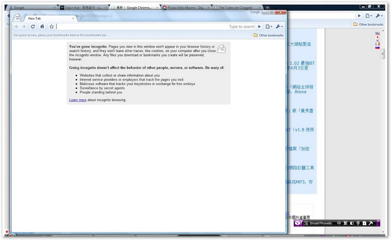 畢竟這還是bate還是有些地方不夠完善,但是想想幾年前,firefox 剛出時問題也一堆,我認為以Google 的能力應該很快就會改善這些問題,這是個很有意思的瀏覽器,給他點時間應該會有很大的改善空間,有興趣的人可以玩玩看!! |