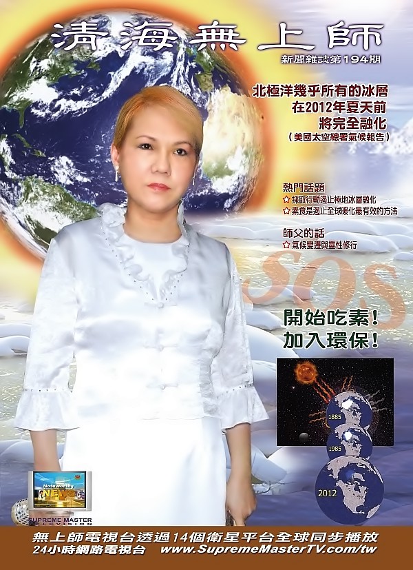 清海無上師新聞雜誌194期出刊了, 歡迎線上閱讀! ![]() 地球能不能生存,就看人的改變速度有多快了....沒有地球 誰可以生存?緊急求救! 開始吃素!加入環保! 國外最新報導 及 立刻拯救行動(不斷更新)http://www.suprememastertelevision.com/tw/bbs/board.php?bo_table=sos_tw&page=2&page=1 美國航太總署2007年12月最新衛星資料顯示 氣候科學家齊瓦利預測北極洋幾乎所有的冰層在 2012年夏天前將完全融化.......... 與清海無上師電話會議討論 氣候變遷 各國領袖 及 人民應立刻行動的事 你想要結束世界上殘忍的行為嗎? 你想要不必武器就結束戰爭嗎? 吃肉是頭號殺手...聯合國糧食及農業組織報告.......
