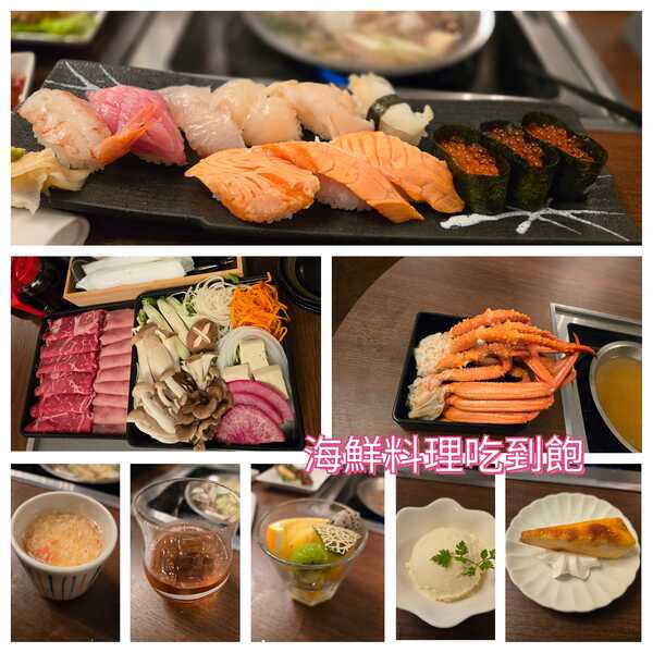 藻岩山看夜景 哇!人山人海,各色各樣的人都有,來自各國觀光客啦! 看完夜景…… 海鮮吃到飽,第一天就這樣了,第二、三、四、五天都是這樣的豪華餐,吃好住好,獅子王的老闆真的是很照顧員工,我不禁讚嘆啊!