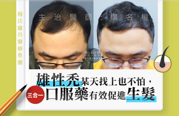 ▲圖為生髮後 禿頭症狀尚未嚴重 靠三合一口服藥解決知道自己是遺傳雄性禿,開始擔心雄性禿有救嗎