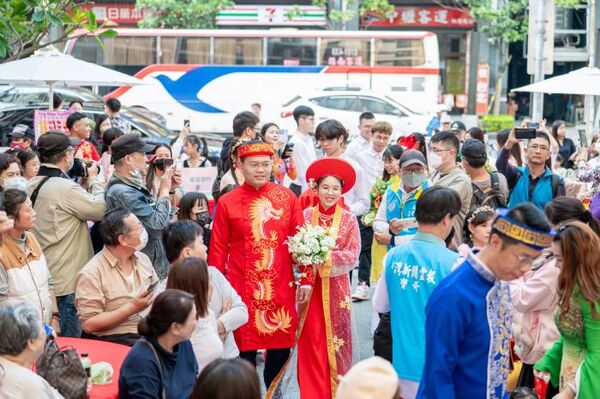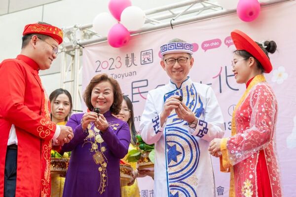 桃園市副市長王明鉅9日下午前往桃園區,出席「新住民專刊發表會暨新住民多元文化市集(越南新住民活動)」。王副市長表示,桃園除有原住民、閩南人、客家人等不同族群外,新住民人口數達6萬6千人,其中以中國大陸(含港澳)的新住民佔最大宗,其他來自泰國、越南、印尼等東南亞國家的新住民朋友則有2萬多人,因此桃園可說是一個族群融合的城市,大家一起在桃園安身立命,為生活打拚,期許未來各個族群間能共存共榮,讓桃園成為有愛、祥和的城市。 王明鉅說,今日活動現場喜氣洋洋,有2名越南移工在桃園工作認識到戀愛,於今日攜手步入婚姻,他非常榮幸能夠前來擔任2名新人的見證人。此外,今日也特別舉辦桃園市新住民專刊創刊號的發表儀式,本次創刊號共有3位代表人物,分別象徵著越南、大陸以及印尼等國家。
