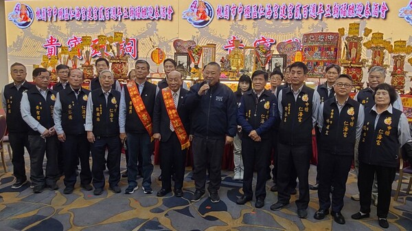 桃園市中壢區仁海宮18日舉辦新春團拜春酒餐會,恭請媽祖偕同眾神蒞臨,相當特別!仁海宮董事長王介禧表示,今年是仁海宮慶建廟200周年,該宮舉行祈安五朝福醮及系列慶典活動,春酒餐會首度恭請仁海宮主神媽祖和眾神出席,期參與建醮的地方人士、醮務局成員、仁海宮轄管里的里長等人士,全力支持建醮系列慶典活動。 五朝福醮慶典活動執行長、桃園市里長聯誼會總會長黃連應說,恭請媽祖娘娘出席春酒餐會,得事先擲筊請示,並由鑼鼓陣和車隊迎接到餐會會場,出席的地方人士於致詞時,依禮需先向媽祖和眾神拜拜致意。 福醮醮務局主任委員范振修表示,仁海宮為慶建廟200周年,在去年底成立醮務局後,即展開籌辦祈安五朝福醮的相關事宜,包括在仁海宮附近、中壢天晟醫院旁、塑造戶外佛像,護眾生平安;醮壇則設於泰豐輪胎用地,做為系列慶典活動的場地。