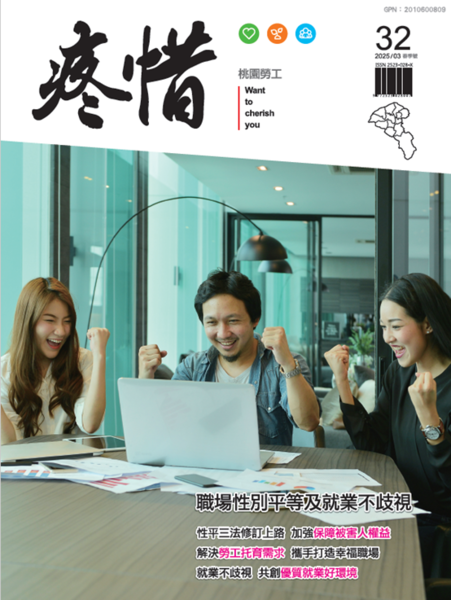 桃園市政府勞動局為向市民朋友推廣勞動法規、勞動政策、勞工福祉及在地產業生態等議題,特製作《疼惜桃園勞工》季刊,使市民朋友更加瞭解自身工作相關權益。 《疼惜桃園勞工》第三十二期已於3月出版,本期封面故事主題為「職場性別平等及就業不歧視」」,內容包括「性平三法修訂上路 加強保障被害人權益」、「解決勞工托育需求 攜手打造幸福職場」、「就業不歧視 共創優質就業好環境」等議題,多元內容精彩可期,請別錯過! 歡迎市民朋友們免費索取、多多運用,瞭解勞動相關資訊,陳列地點如下:桃園市政府綜合服務櫃檯、就業職訓服務處、勞動檢查處、各區就業服務臺、就業中心、戶政事務所、家庭服務中心(家扶、親子館)、市立圖書館、桃園展演中心、醫院、衛生所、各工業區服務中心、各區公所、立委、議員服務處、各級工會、大專院校、高中職及桃園市內各交通運輸點(臺鐵、高鐵、桃捷、客運)等。並可於桃園市政府電子書平台( https://ebook.tycg.gov.tw/book/content.php?id=525 )線上閱讀。 |