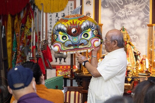 阿水師指出,獅被上的「五色布」象徵武館師徒倫理,上有師公、師父,下有徒子、徒孫,合為五代,因此縫製五色布於獅被之上,藉此提醒學習者尊師重道,也寓意技藝世代相傳、開枝散葉。五色布不僅是造型元素,更承載深厚的文化、倫理與傳承意涵。 本次展覽重點呈現「葉佳水保存者獅頭製作傳習暨教育推廣計畫」之教學成果。傳習班學員歷時數月,循序向阿水師學習獅頭製作的各項工序、工料與工法,並親手完成作品。多位學員也分享,傳習課程不僅提升製作技術,更讓人深刻體會獅頭工藝所蘊含的武德精神與傳統倫理,對「尊獅重道」有了具體而真實的感受。