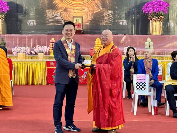 蘇俊賓也引用牧羊女供養佛陀乳糜、成就佛陀悟道的故事,說明一個看似微小的善念,往往能產生深遠影響,甚至流傳千年。他強調,市府將全力支持佛光山在桃園新弘法基地的建設與發展,期待這股善的力量以桃園為起點,持續向世界各地擴散,讓世界看見桃園的溫暖與善意。 佛光山宗長心保和尚表示,法寶節是紀念釋迦牟尼佛成道的重要日子。佛陀悟道後所傳達的核心理念,是告訴世人「每個人都具備佛性」,鼓勵大眾肯定自我、啟發智慧,為人生注入信心與力量。他也指出,世間萬物皆依「緣起法」而生,今日法會能夠圓滿完成,正是眾多貴賓、法師與信眾共同發心、匯聚因緣的成果,期盼大眾落實「做好事、說好話、存好心」的三好精神,累積福德、開展心量,讓內心世界更加寬廣與歡喜