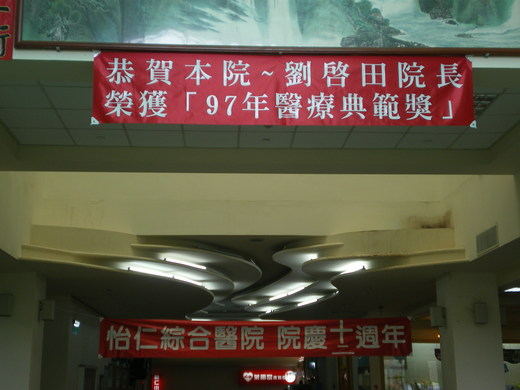 西楊梅地標怡仁醫院院慶驚喜連連 醫院的「靈魂」劉啟田升任十陸公司董事長 最佳公關張長榮添任十陸公司總經理 敏盛綜合醫院醫療團隊副總裁林宗熙接任院長 楊梅鎮「最高」醫療單位—怡仁綜合醫院最近歡度十二週年的院慶,升任十陸公司董事會董事長的前院長劉啟田,同時獲得「九十七年醫療典範獎」,曾經擔任該院總務主任的張長榮接任總經理,桃園敏盛綜合醫院醫療團隊副總裁林宗熙接任院長職務,長廊上的布幅、花籃說明了怡仁醫院院慶驚喜連連。 怡仁綜合醫院位於西楊梅的高山頂山腰上,位置足以鳥瞰整個楊梅鎮區域,環境清幽,周遭林木青翠,許多病人及家屬喜歡在夜間臨窗欣賞楊梅夜景,甚至可以見到中山高速公路車龍般的燈光,清晨時分,不但住院病患會走下醫院的斜坡,到第二停車場的土地公拜拜,默禱神明保佑早日康復返家,附近住戶也當成運動小公園,做體操、慢走、騎腳踏車的人影四處可見。 目前升任十陸公司董事長的前院長劉啟田,十二年來一直都適怡仁醫院的「靈魂」,推動地區性醫療工作、引領醫療團隊、保持醫療水平、維護地方民眾的健康,付出了相當多的心力,當然,也獲得了「創院院長」的永久尊榮,最近又獲得「九十七年醫療典範獎」的榮譽,在個人醫療資歷上添加一筆濃厚的光采。 在怡仁醫院興建時期,就以留美碩士身分返台的張長榮,開著吉普車每天往返於台北住家、楊梅工地之間,醫院開幕後以總務組長職位兼任公關,歷任總務主任、行政部主任、敏盛醫院行政副院長、醫療團隊副執行長,目前仍擔任敏盛精國院區醫學美容公司總經理,如今添任十陸公司總經理職務,又在楊梅警分局民防中隊接續劉啟田擔任中隊長,延續積極的公關精神,已經敏盛醫療團隊成為重要的行政角色。 原來擔任敏盛醫療團隊副總裁職務的林宗熙,是醫療經驗非常豐富、資歷十分完整的醫療人才,受到桃園敏盛醫院的力邀加入團隊醫療網,豐富的人脈關係與圓融的處事態度,讓敏盛醫療體系極度信任,在接受團隊安排進入楊梅怡仁綜合醫院,擔任整體工作團隊的靈魂人物,相信對於未來怡仁綜合醫院的經營方向會有更加突出的表現。 十二個年頭匆匆過,怡仁綜合醫院的西楊梅地標色彩依舊,整體大環境的因素,雖然讓院方選擇較為淡然的態度面對,一張橫幅書寫著「怡仁綜合醫院院慶十二周年」,卻是驚喜連連。