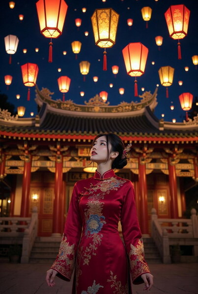 而凝視妝點著傳統的燈籠之海