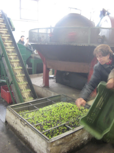 (上圖:搬運的拖車) 我讀過很多關於橄欖的故事與比喻。 1999年,THOMAS FRIEDMAN在他的暢銷書《凌志汽車與橄欖樹》中,以橄欖樹比喻強調認同、家園、疆界的國族主義。2004年,阿拉法特在他的官邸種下一顆橄欖樹,留下一句名言「我帶著橄欖枝與自由戰士的槍前來,不要讓我手中的橄欖枝落下。」 遠從希臘神話,橄欖樹就象徵安定、生命、和平。蕾多(LETO)四處逃避天神宙斯善妒的妻子希拉追殺,最後倚在一顆橄欖樹旁生下阿波羅與黛安娜。聖經《創世紀》挪亞方舟故事裡,在洪水退去後,挪亞放出鴿子探勘,首先叼回的復甦象徵,也是一根橄欖枝。 從前我不太明白,為何看來不起眼的橄欖,能如此歷久彌新地穿透整個地中海文明,滲入文學、神學、美學、哲學、音樂各領域。直到來義大利,我才深刻體會,即使是廿一世紀的高科技生活,他們還是何等依賴這顆小巧的「生命之果」。 橄欖最大用途是製作橄欖油。義大利橄欖油分很多等級,最上等是EXTRA VERGINE(初榨),指新鮮橄欖第一次榨取的油,燃點最低、最純淨,適合直接做沙拉佐料。之後再用化學成分倒入橄欖渣擠出的次等、三等油,燃點較高,則當作炒菜油、炸油,或加工外銷出口。 不過義大利市售多數標榜「EXTRA VERGINE」的橄欖油,其實都非真正初榨,外銷者更不必說。因此當地內行的義大利家庭、餐廳,都會直接向鄉下小工廠訂購。 週末我們參觀了一家羅馬郊區的榨油工廠,小小廠房裡,堆滿箱裝新鮮橄欖。橄欖送入運輸帶,經過清洗、烘乾、輾碎、水油分離等流程,立刻篩出一桶桶金黃色的液體。