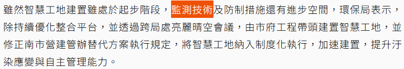 南市府攜手雲科大以AI管理工地 拿大獎並提升工地汙染應變效率 2024-08-13 台南工地管理更有智慧 工地汙染逃不過電子法眼 2024-12-03