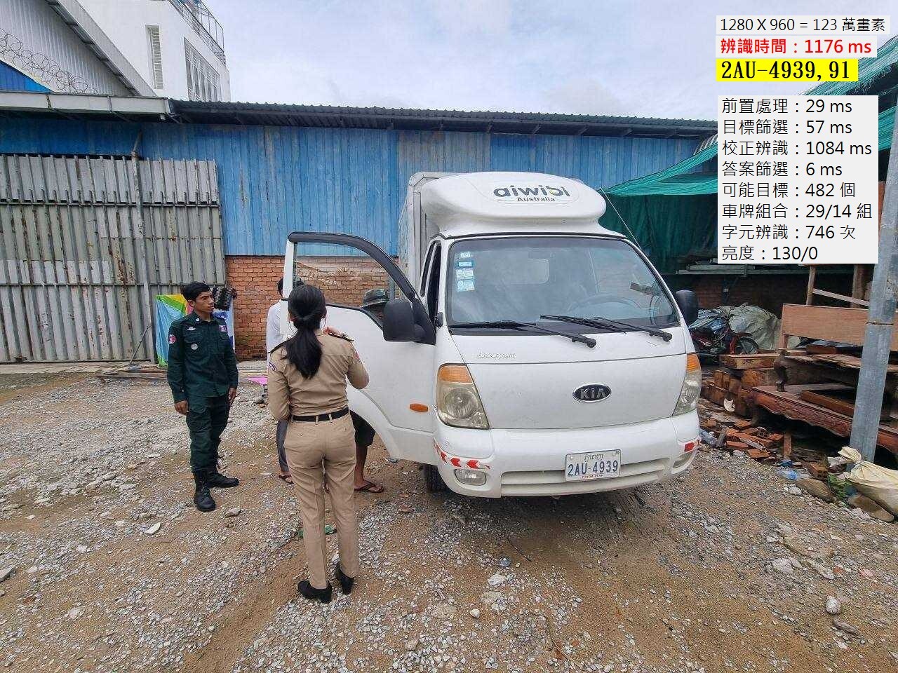這種一百多萬畫素大小的影像,正常來說我的辨識時間應該只是0.1到0.3秒之間,但是實際的辨識時間必須看畫面複雜的程度而定!當背景中有大量不平整的地面、柵欄狀目標或樹叢時,我又希望即使很模糊變形的車牌都要能辨識到,資料處理量就會暴增!結果就是如上圖所示,車牌是辨識正確了,時間消耗卻很慘烈!高達一秒多鐘!以目前的電腦使用經驗,超過0.5秒一般人就會覺得辨識卡卡了!
