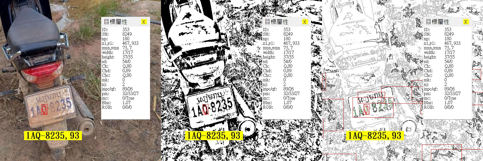 如果你只看我時常PO出的神奇辨識結果,可能會以為我是從某個神祕的AI寶庫偷到了甚麼神奇的武功秘笈?或是得到外星科技?老實說十幾年前我剛接觸影像辨識時,也是覺得這些技術高深莫測?重點是:不管我怎麼努力看課本或論文,都覺得內容過於簡單,根本不可能完整解決真實影像的複雜狀況! 這很像古人面對多數自然現象的變幻莫測感到神秘與沮喪的心情一樣!基本上人類的歷史是從兩個方向去適應努力的!一個是累積經驗,就是即使天機莫測,但是只要累積經驗找到萬物變化的概略規律就可以解決很多問題了!像是一年四季的氣候變化觀察久了就有24節氣的「學問」! 但是這種「學問」是知其然而不知其所以然的無根知識!因為事實現象的成因太複雜,這種「學問」無法做準確的推理,所以準度有限,任何一個例外都會讓古人受到傷害!所以人類有了另一個更可靠的努力方向!就是「科學」!我們希望可以理解所有事物的成因,經過準確必然的科學原理做出更精準的推論。 所以事實上人類的科技史一直都是這兩種概念交替進行的!在科學不發達的古代當然依賴經驗多於科學!越到近代科學進步,我們就越來越依賴科學來解決問題!有趣的是:即使是已經相當成熟的科學發展,面對很多太複雜或難以精準測量的問題還是力有未逮!譬如股票的漲跌,或消費者的購買習慣等等。 也因此即使科學已經很昌明了,以統計學為基礎的經驗法則並未消逝!尤其是在這個世界電腦化之後,所有事情活動都會留下很多數位資料,以前人類的經驗只能存在老人的腦袋或書籍文獻碑銘文物之中,現在呢?凡走過必留下數位足跡!累積「經驗」的方式與效率都比古代更多更容易!這就是現在大家說的從大數據產生AI的熱潮了! 但是我覺得這些AI或許在某些領域太成功了?夜郎自大到好像這種以經驗累積統計為基礎的技術可以完全取代既有的科學研發?須知不管他們已經成就了多少基礎科學辦不到的事情,他們依然是不知其所以然的無根知識!如果我們希望分析的對象要精準而且「合理」,這種AI就根本無法辦到的! 影像辨識就是一個很關鍵,也很特殊的:「經驗AI」與「精準科學」的戰場!如上圖的困難辨識狀況,現在的主流派的AI專家,一定會告訴大家必須收集更多類似的模糊資料,讓深度學習的模型去訓練出辨識軟體?就像辨識網路上隨機出現的動物影像是貓或狗一樣! 如果有某個AI專家(或玩家)說我的DL模型可以正確辨識九成以上的貓或狗,大家一定會鼓掌叫好!但微妙的是:真實世界需要用到的影像辨識需求,如車牌辨識、人臉辨識或指紋辨識,要求的精確度都遠遠高於九成!沒有98%以上的車牌辨識軟體停車場是根本不會採用的!人臉與指紋辨識當然要求更高! 即使大家都會說影像辨識沒有百分之百的!我的車牌辨識軟體拿到車水馬龍的街道上使用,正確率也只有九成,但重點是每一個辨識失敗案例我都可以準確分析原因,明確告訴使用者為何辨識失敗!也因此可以繼續精進,準確穩定的逐步提升辨識率!原因就是我是用「精準科學」而非「經驗AI」做影像辨識的!如果我用ML呢?連我自己都不知道為何辨識失敗了!我會被客戶罵死!這個生意還怎麼作下去? 如上圖是我的實驗程式介面的截圖,點選圖上任何一個可能的字元目標,都會出現一長串的屬性資料!包括寬、高、顏色、對比與可能是某字元的符合度等等,數量多到族繁不及備載!這些可能的目標又會進一步被組織成可能是一個車牌的群組,又會產生一大堆有關這個組合的屬性資料!我就是在如此繁雜,但非常明確的科學資訊中推理辦案做出神奇的影像辨識的! 所以我一開始就無法,也不願意去蹭AI!就是那些以ML、DL與CNN為主體的「經驗AI」我基本上是不用的!正確的說:我的影像辨識是屬於「專家系統」形式的AI!我也完全不想搞神祕!即使我不是教授了,沒有必要寫論文證實我的研究價值與可信度,但是實話實說很好玩!也能取信於有專業知識的讀者與客戶!我會繼續揭露我的商業機密的! |