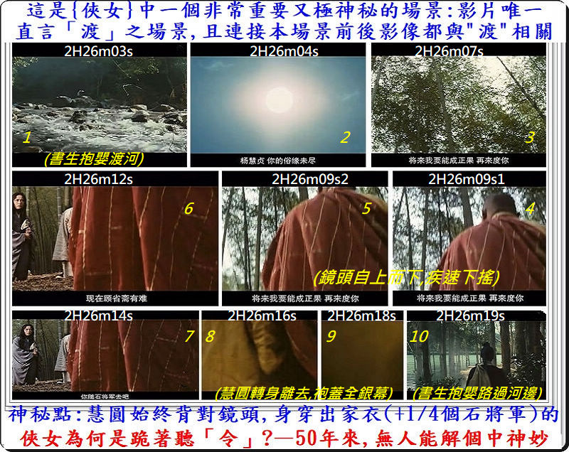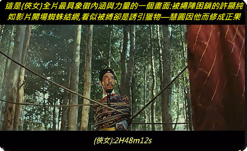 [C] 最下面那張截圖,是教人對此片最感驚奇又神妙之處: 推動許顯純「蛻變為蜘蛛」的這股神奇之力的「來源」, 並非來自於許顯純自己, 而是「自動送上門」的慧圓禪師! 正由於慧圓給許顯純「送上」了"那個什麼"(待續), 最終才導致慧圓的涅盤—這個極其"神"妙的過程, 才是{A Touch Of Zen}全過程中, 最為神奇的一段A Touch Of Zen!#