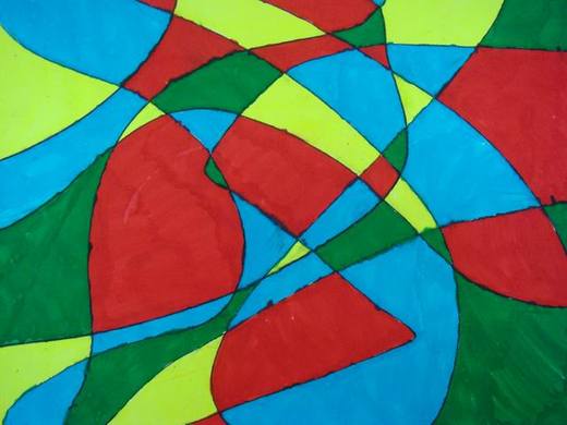 很喜歡推理故事,從以前的阿嘉沙‧克莉絲蒂開始看,然後慢慢推向近代作家。先是覺得赤川次郎的故事很輕鬆,後來看見了東野圭吾,就開始盲目起來,只要冠上「東野圭吾」四個字,幾乎就是照單全收了。 「嫌疑犯X的獻身」,數學家和物理學家的對決,裡面提到了所謂的「四色問題」,原諒我無法解釋得太清楚,大意是說假如地圖上每個國家都與鄰國邊界相鄰,而每一個國家都用一個顏色表示,並且與鄰國不同色,最多只需要四色,就可以把所有的國家都著色。 開學第一週的美勞課,就讓孩子們選了自己喜歡的四個顏色,試試看這個四色問題。畫起來有彩繪玻璃的效果,很漂亮呢! 這三張的作者是五年級的孩子:福明、佳微、七分(他真的叫這個名字啦!)七分的畫有一點點小失誤,一些相鄰的圖塊不小心用了一樣的顏色,但是無損圖畫的美感。 |