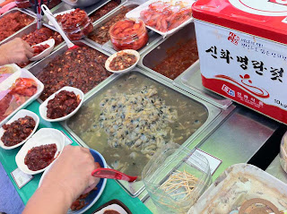 | 這次去首爾是帶媽媽一起去,主要以她想逛的為主,所以買的東西跟網路上年輕女孩推薦的很不一樣(照片中是各式豆類製品) 。 我們去的是首爾地鐵1號線上龍山站的E-mart。 調味粉區。平常沒有在煮飯的人一定很陌生。 飲料區。 各種醃菜。秤重販賣。 中秋禮盒。韓國也是重視中秋節地方,再過一個星期就要過節,商場、市場到處可見送禮的禮盒。 比較高檔的靈芝禮盒。 在超市買了這些。 三角飯團組合包。這組合包括外包裝用的海苔、三種口味調味粉、三角飯團模型。在台灣曾經買過元本山出的。請見 鋁箔包果汁。包裝看起來很好喝,而且這種設計可以塞在行李箱的空隙處,不占空間價格也不貴。 烹飪調味料。品牌是韓國食品大廠청정원。強調不含味精,用天然食材製成。用法類似日本的烹大師,但這家的口味更多,左邊是台灣比較少見的蔬菜口味。 抹茶。賣場試喝完立刻就買了。甜度適中,混合玄米或擂茶的香味,還有淡淡的鹹味。 沖泡方式。冷熱飲都適合。 代言人是時尚王劉亞仁。 倒出來的樣子。裡面參雜一些米果碎片。 露天市集。Shopping Mall外面廣場不定時舉行。 蜂巢。 醬螃蟹。 醃海鮮。每種都可以試吃。 醃明太子。1kg約台幣280,太便宜了。 |