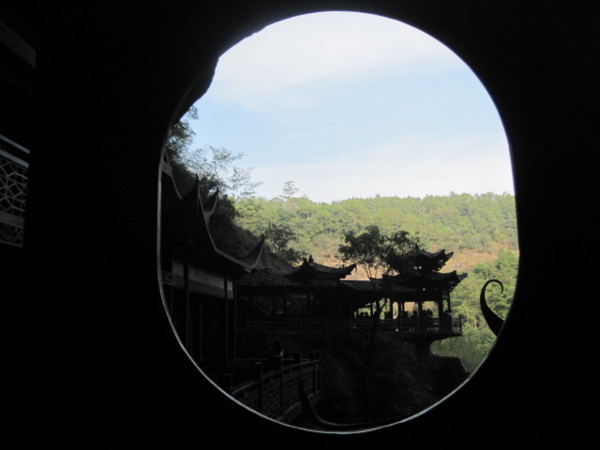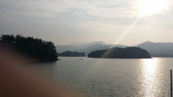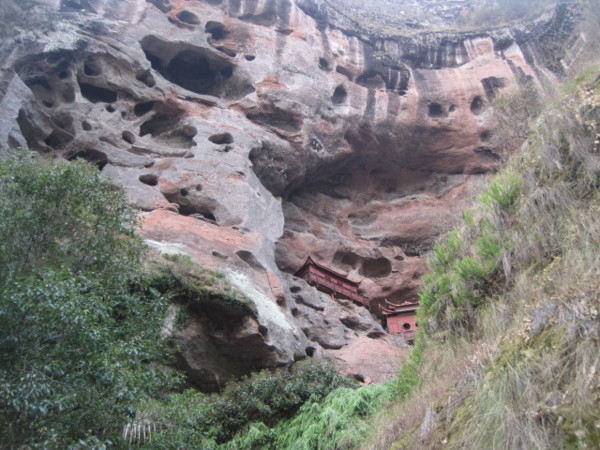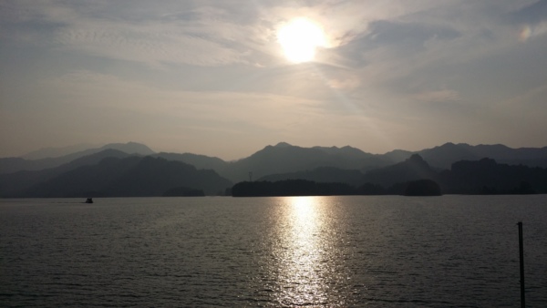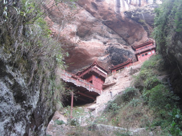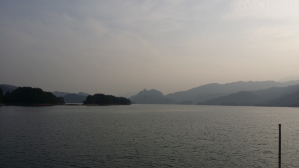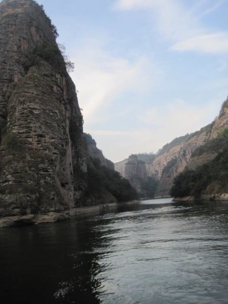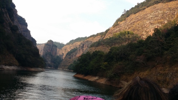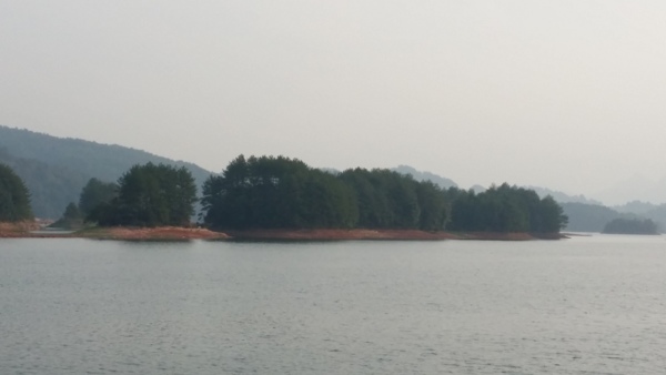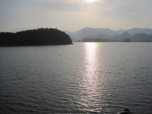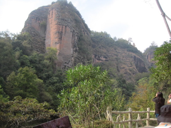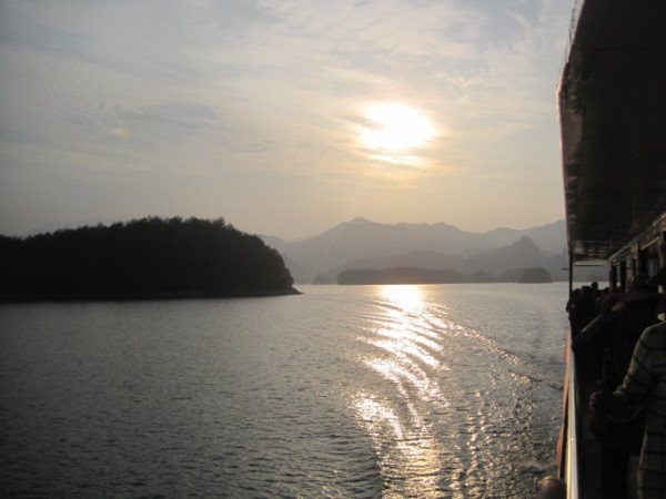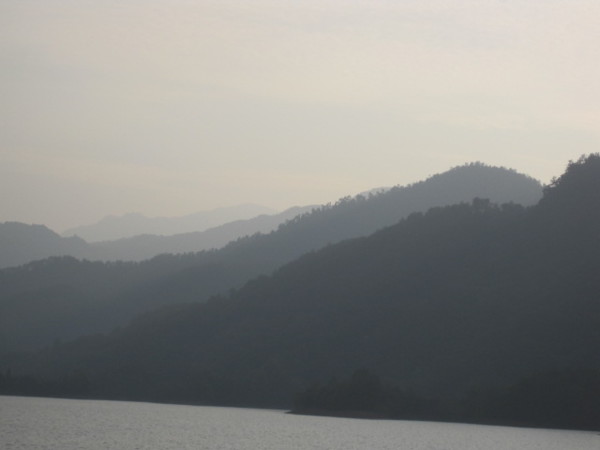 泰寧陽明山莊的早餐對我而言相當的豐富,因我是個蔬菜愛好者,但團裏幾位高頭大馬的老外,不知他們如何吃下這清一色素菜的早餐。這早餐甚至連一片午餐肉或一條熱狗(hot dog)都無,咖啡也無。外國人幾乎是無肉不歡,這樣的早餐定令他們叫苦連天,但娶華人為妻的老外大概早已被訓成半個中國人了! 孤陋寡聞的我是這次廈門行才首次聽到大金湖這三個字,上網一搜景色確實美。後跟泉州一些朋友談起,對大金湖他們皆耳目詳知,很多人已遊玩過,看來大金湖知名度已打響,現正沖向國際。 坐船遊大金湖,剛開始我們四人齊坐下層,邊聊邊觀看玻璃窗外美麗的湖光景色,後來我忍不住獨自跑到上層。這一上就舍不得下來了,景色更美,特別是迎著涼涼的秋風更賞心悅目。船行其間美景變換不斷,偶爾是湖面寬闊、偶爾又進入雙邊貌山奇麗的狹道湖面上,兩岸奇石異洞令人目不暇接。當前方現出四重山的景色時,眼前宛如一幅幅水墨畫,本來甲板上鬧哄哄忙著拍照擺美姿的一眾人,突然都靜下來了,都被眼前這自然美景給震撼了,太美了!美得令人疑神靜觀、忘了呼吸、忘了身處何方、忘了手中的相機,此時再怎麼拍也無法把眼前曠闊山靈水秀的美給拍下,只好盡情地欣賞,把美景盡量地嵌進腦海裏儲存起來,心中不斷贊嘆著:原來大金湖是如此的秀美! 以前到美國的太浩湖遊玩,平靜的湖面望不到邊,水連著天,湖水清澈見底,我歡喜得驚為天湖,此次見到大金湖周邊美不勝收的景色,不得不說太浩湖跟它沒得比。 後來船停靠一處山邊,我們徒步登上甘露岩寺,途中更見到一聳立平整大峭壁上仿佛有尊佛祖,很奇妙。甘露岩寺崁在懸空的山崖峭壁上,寺廟下只用一根柱子托起,好奧妙!(九)