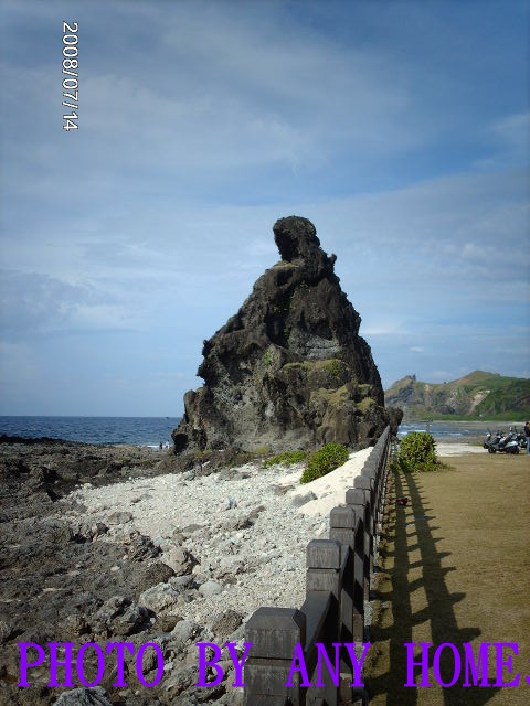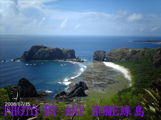 綠島風情畫 》奇岩怪石大會串 【文.攝影/ANY】 綠島是很久~很久~千萬年以前,由海底火山噴發而成形的島嶼,所以到處都 是黑色的岩石,有些噴的稍遠,就在環島四周圍形成一座座不規則的黑色礁 岩,人們依其外形穿鑿附會取了各式各樣名稱,有些維妙維俏,也有些讓人 會心一笑,但願維持原狀,別人工畫蛇添足破壞。 光是看這些名稱,我就非常佩服想像力豐富的先人,舉例 : 軍艦礁、公館 鼻、將軍岩、馬澳礁、海蝕門、牛頭山、樓門岩、勇伯礁、楠仔湖、柚 子湖、睡美人、哈巴狗、孔子岩、滾水鼻、火雞岩、帆船鼻。 我是這麼想 : 當初火山神發怒大噴時,冒出個綠島,後來又打個噴涕,四周 圍才會有那許多珊瑚礁岩,至於溫泉嘛總要留個讓人懷念火山神的紀念品 吧。 觀音洞 離『綠島文化園區』不太遠,順著路標走山路,看到像廟宇前紅色牌樓,還 以為有座觀音廟,原來在山邊石縫中有鐘乳石,或許有人認為鐘乳石形狀像 觀世音佛像,放了桌子讓人燒香默禱祭拜鐘乳石,旁邊闢建小徑往下走,潭 水不知深淺,無法進入。 柚子湖 從馬路轉入下坡路段至海邊的路,連續幾個180度大轉彎,來到地名『柚子 湖』的海邊,這裡的景觀堪稱綠島之最美,原本是個小漁村,如今人去屋空 無人居住,只剩幾棟半毀的黑色礁岩搭建的房屋,翠綠的林投樹、碧海藍 天、潔白的貝殼沙灘、奇形怪狀巨大黑色礁岩,美的讓人不捨。 晚上回到民宿,和同伴聊天時才想到,『柚子湖』呢 ? 我們怎麼沒看到『柚 子湖』 ? 是有個像柚子形狀的湖嗎 ? 是海水或淡水 ? 一問之下才知道僅僅是 地名而已,並非真的有個湖。 小長城 在綠島東邊有一處伸出海岸的礁岩峭壁,地名『海參坪』,算是迷你小山 丘,搭了木造梯階,爬上數百階到頂的『觀海亭』,雖說是迷你小山丘,然 而豔陽高照要爬這號稱為『小長城』的梯階,除了汗流浹背,搞不好還會中 暑,我連考慮都免了直接放棄,就在馬路邊拍照,連鴿子都配合入鏡。 睡美人 & 哈巴狗 就在『海參坪』海岸邊,兩大塊黑色礁岩相距不遠,睡美人橫臥海水中,任 憑浪潮拍打,唯妙唯肖的哈巴狗抬頭望著睡美人,彷彿正聊天,逸趣橫生。 我偷懶沒上『小長城』,也得到賞心悅目的景觀。 大白沙 位置在綠島最靠南邊,此『沙』非彼『鯊』,是大白沙、不是大白鯊,千萬 別誤會了,綠島最大片的珊瑚碎片和白色貝殼組合成的沙灘,沿海地區較 深,約 沿海地區繞一圈下來太滿足了,唯一小小遺憾未能征服『過山古道』,海岸 邊都玩到樂不思蜀,哪抽得出時間走 過叉路口都提不起興趣,只好留待下次有機會再來吧 ! 或許挑個冬天淡季再 招兵買馬來健行。 引用文章 綠島風情畫 》 在熱帶魚&珊瑚礁之中浮潛 . 本文登上 聯合新聞網首頁,旅遊休閒|旅人手札 97.08/27 ↓↓↓ 觀音洞 ↓↓↓ .