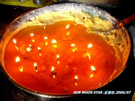 一、 佛寺重建時 主殿的爐火 是護衛將軍 修真祖師 從橫屍遍野的鋒火戰場引來 幾位小沙彌 圍繞於旁 窮山峻嶺 望穿寒夜 思爹娘 窗櫺格花 灑落夕陽 香火裊裊 鐘聲 隨幡飄揚 二、 也是 進京秀才 借宿夜讀 的依靠 師叔 燃指獻佛的見證 更是 那年 百里饑荒 住持含淚燒烤全羊 分食饑民 不管是 大殿 或廂房 禪房 柴房 全是災民避難所 那盆火 就成爐火 三、 師父 經年化緣久久遲歸 當年小沙彌 已然是位壯碩的少年郎 今夏 雲遊三山五嶽才歸來 疲累步伐 月光下 已現 香客捐贈 銘刻風調雨順的金鼎香爐不在 不解 憂心踏進寺裡 這才發現值錢的 不說鑲珠貝五進紫木神桌椅 全沒了 連 那對官賜百年八尺鯨魚油燭 連銅質基座 也全招變賣 惋惜 卻笑見 佛前 那盆 曾滿裝酥油 黑石打磨 的粗糙黑髒的人頭殼石盆 一息燭火尚存 四、 燭火鬼影幢幢 為何 消瘦的徒弟回答說 只是 屋宇年久失修 狂風暴雨 差點熄火 五、 這才聽出 那帶著 無起伏 寒冷若冰的聲音 徒弟 何苦來哉 六、 隔夜 清晨 師父 把骨骸 安葬於後山 香火 持續 不滅 梵音再起