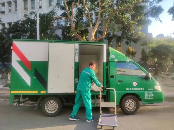 (郵差用郵車送遞信件)