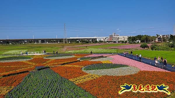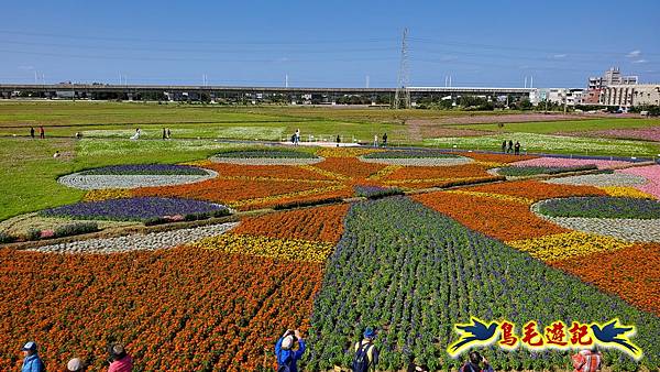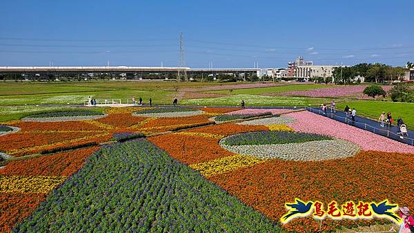利用各式花草拚鋪不同色塊的彩繪圖騰,吸引遊客賞花拍照,甚至還有新人來此婚紗攝影呢。