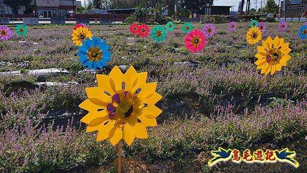 上湖派出所前的紫色仙草花田裡,有各種不同顏色的小風車,當風吹起時風車們隨風轉動像電風扇一般,一個比一個轉得快耶...