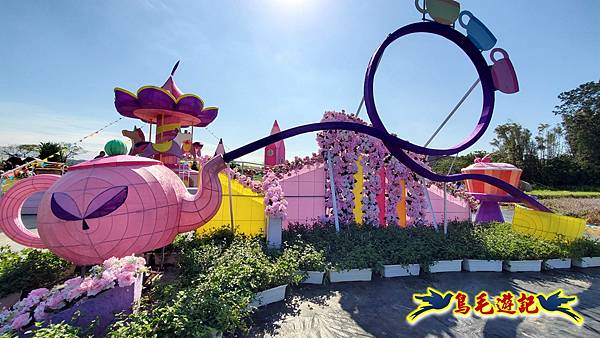 今年桃園仙草花節以「遊樂園」為題,在園區設置多個裝置藝術,從糖果鞦韆、旋轉木馬到茶壺像是充滿童趣溫馨的仙草樂園,