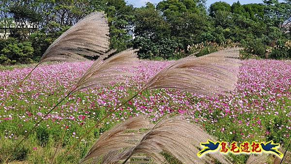 到此一遊可徜徉在仙草花海感受嘉年華的歡樂氛圍。酪農區有成捲的稻草及乳牛裝置,秋天的芒花在波斯菊花前竟相形失色。