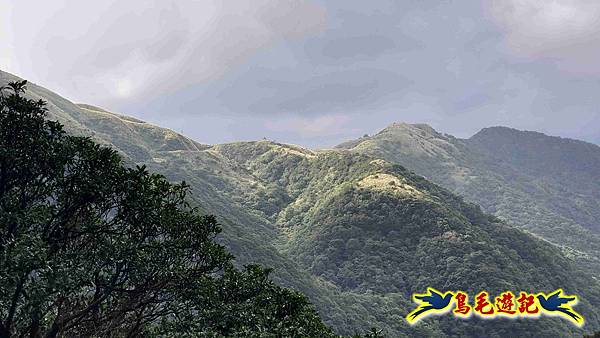 遠望剛走過的牡丹山稜線,11:14三貂崙(猴硐山),位於不厭亭至探幽亭稜線山徑途中,海拔555公尺,有顆未列名32號基石。
