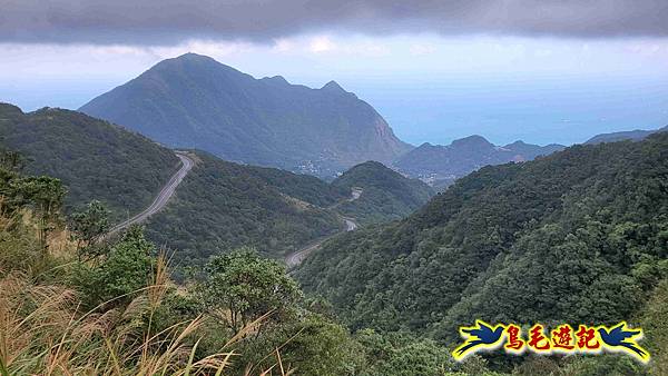 續前行,遠眺基隆山,俯瞰金水公路,景色壯闊優美,9:21貂山古道石碑,
