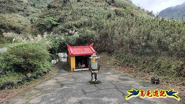 石碑後方就是金山福德宮,不厭亭至此約3K,9:27從貂山古道旁的碎石路進入,眼前山稜上可見2座電塔,就是往牡丹山稜線路,