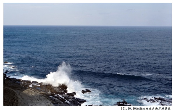 一片湛藍海水靜靜流淌著 在拍岸「瞬間」染「白」了