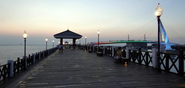 淡水暮色 淡水漁人碼頭,一直都是許多國內外旅客必然參觀景點,也是很多喜愛攝影及寫生畫家喜歡描繪取材的地方, 每當落日餘暉時,河岸景觀區自是欣賞淡水夕照的絕佳地點。