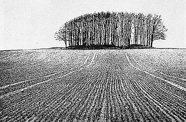 反印出天地的蒼茫,衆樹羅列著垂立于地平,根鬚乃下長的枝椏,鑿入地之深心化無機爲生命的律動枝椏是上向的根鬚吸朝暉夕照而成果實的豐黃