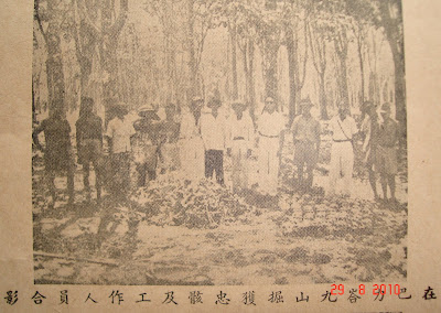 為出版麻坡中化中學百年紀念刊,我訪問了顏其仁老師。顏老師送我12張《麻坡僑眾揮淚祭忠魂》歷史照片。
