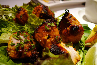 | 其實在這之前,已經去過一兩次,只是都沒照相留存。這次可就有照片當作解說了,而且有趣的是當天裡頭八成以上都是外籍顧客,我們和隔壁桌是唯二的本地顧客。 對照旁邊較為廉價的另一家印度餐廳,那裡大概真的是較為老少咸宜,都是青少年和家庭顧客為主。 低調又有性格的擺設,桌上永遠都是這樣的清爽。 開頭招待的餅。 優格、醃漬洋蔥和香菜醬,配菜或者米飯很是不錯。 原味優格一杯,小心腰圍啊.... 炸洋蔥蔬菜餅,很不錯且不會很油膩。 香料烤雞塊,鮮嫩味美。 香料飯,乃是印度米加上番紅花和薑黃做成。 香料炒蘑菇,味香且濃,忍不住會想多吃飯。 串烤魚,這個就沒有雞塊受歡迎了。 拉賈斯坦羊肉咖哩,濃厚北方香料與羊肉之大成,味重又濃郁。 乳酪菠菜泥,打成泥的菠菜很是爽口。 蒜味烤餅「Naan」,配這些印度菜才適合啊! 店家招待的甜點。 店家招待的印度奶茶。果然每次前往都有不同的樂趣,實在值得推薦,也難怪是台北最好的印度餐廳。