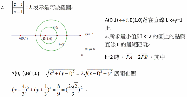 其中之一是直線x+y=-6,另一個是k=2的圓內與k=5的圓外的區域