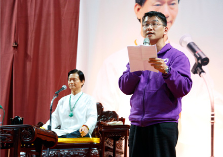 將所體會到的一切,和在場佛教如來宗的弟子們分享