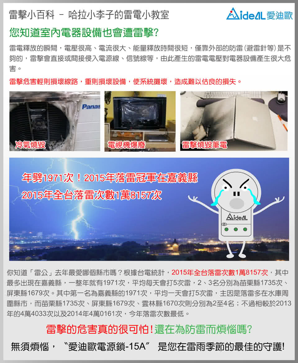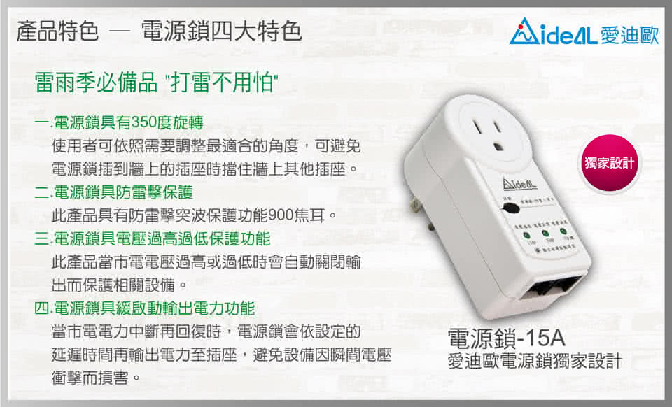 最進剛好有空閒的時間,可以帶著小朋友一起到處逛逛,順便看看有沒有便宜的東西可買囉, 我認為東西須要經過比較一番,想想還是有些猶豫不知是否要馬上下手買,後來聽姐妹的分析認為購物網站應該有更好更便宜, 為了買到 【愛迪歐IDEAL】防雷達人 電源鎖-15A(防雷擊突波器) ,這幾天到處的找東西,尋問很多大賣場和商店,直到找到它, ![]() 【愛迪歐IDEAL】防雷達人 電源鎖-15A(防雷擊突波器)