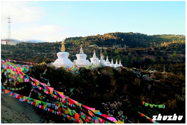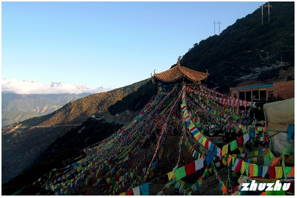 雲南省迪慶藏族自治州梅里雪山Google衛星圖查看大图 飛來寺觀景台無疑是觀賞梅里雪山日出的最佳去處 飛來寺的白塔群,在雪峰下愈顯潔白 經幡在寒風中翻卷,風雪交加,經幡早已褪色 也就一眨眼的功夫,金光連閃,太陽就升上了天空,雪峰又恢復到了白色 卡瓦格博,好像就穩穩的坐在雲彩之上,在雲中打量著生長在他腳下的一切似的